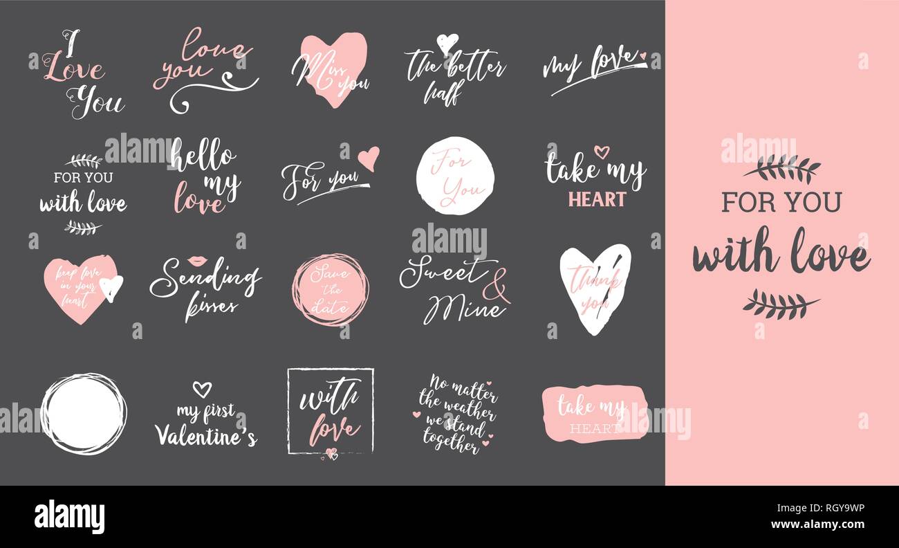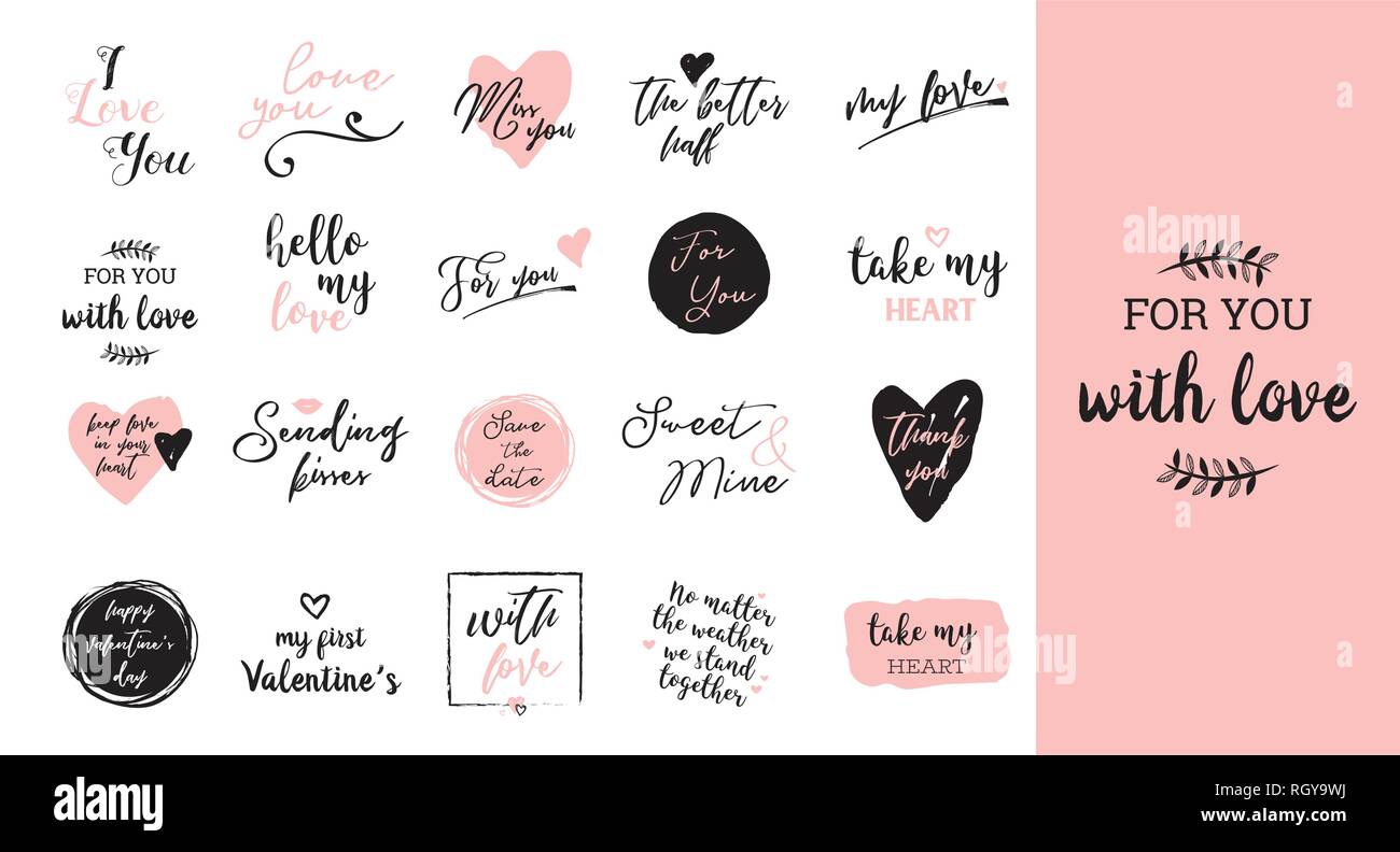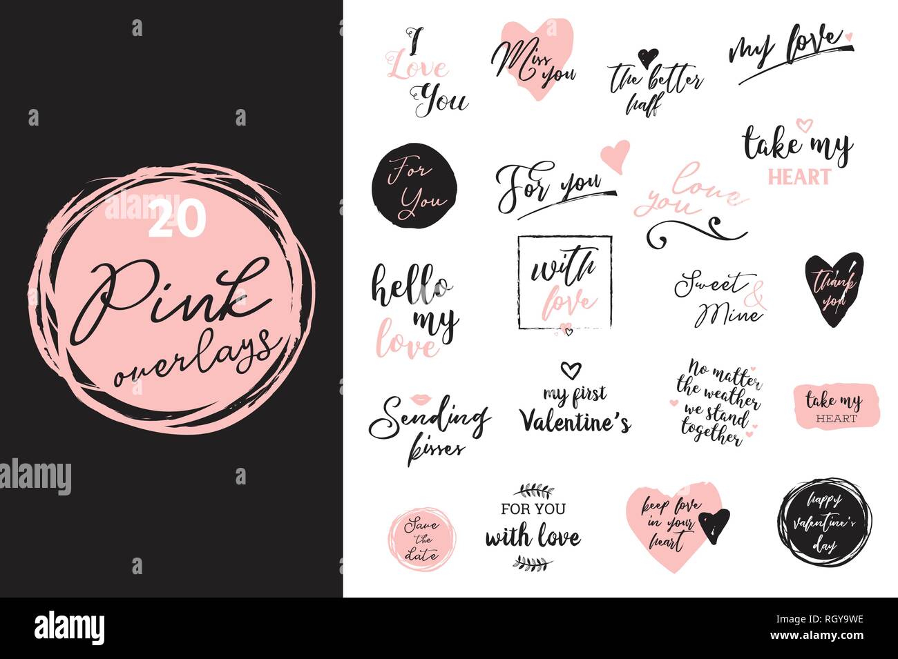 Set Of Black White And Pink Love Lettering For Valentines Day Design Poster Greeting Card Photo Album Banner Calligraphy Vector Illustration Col Stock Vector Image Art Alamy