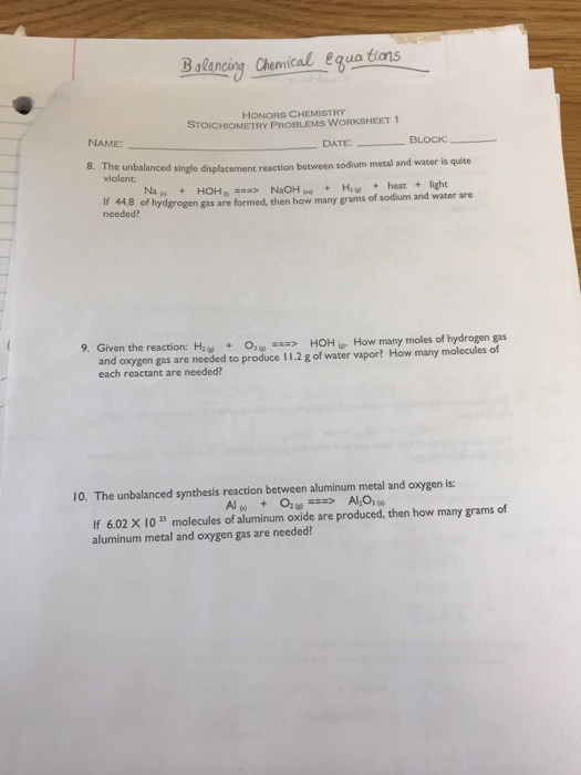 Highschool Stoichiometry Has Anyone Seen This Worksheet I Need Answers Asap This Is Confuzing Chemistryhomework