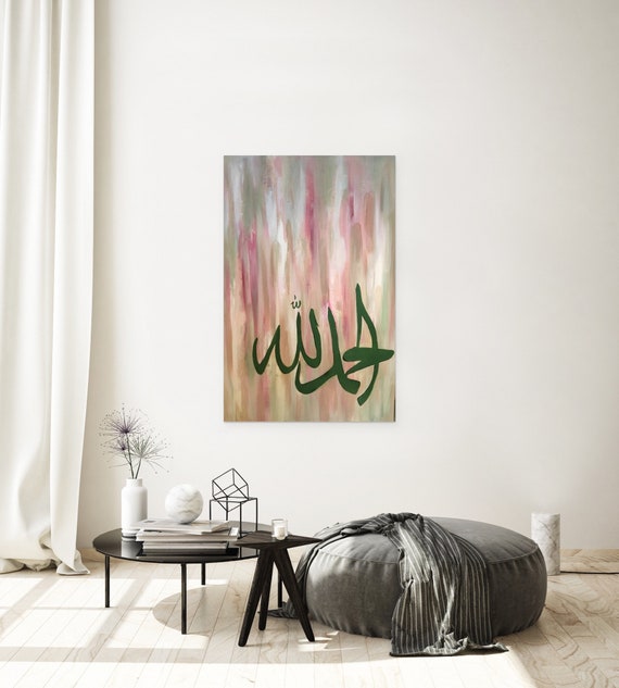 Custom Art Alhamdulillah Art Arabic Calligraphy Art Islamic Art Blush Pink Abstract Islamic Painting Pink Green