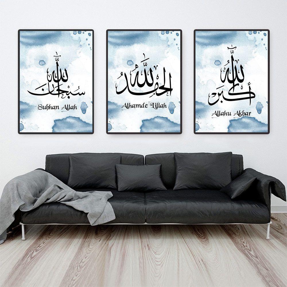 Amazon Com Islamic Wall Art Arabic Calligraphy Wall Decor Handpainted Oil Paintings Muslims Decor 3 Pieces Modern Abstract Religion Canvas Picture Print For Islamic Gifts Gift Muslims Framed Ready To Hang 16 W X