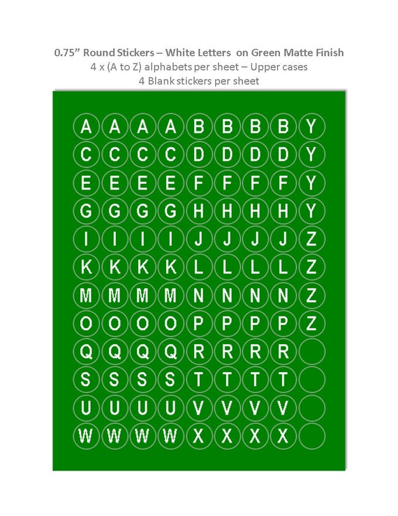 White Letters On Green Sticker Alphabet Letters A Z On Etsy