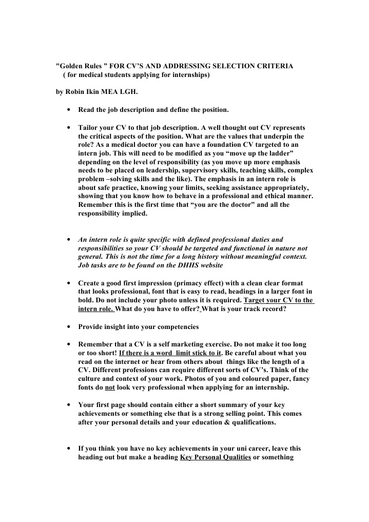 Cv Selection Criteria Golden Rules For Intern Applications Internship Job Hunting