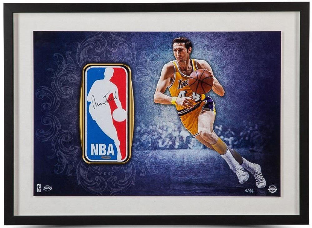Jerry West Signed 20 X 24 5 Custom Framed Nba Sticker Display Inscribed The Logo Psa Coa Pristine Auction