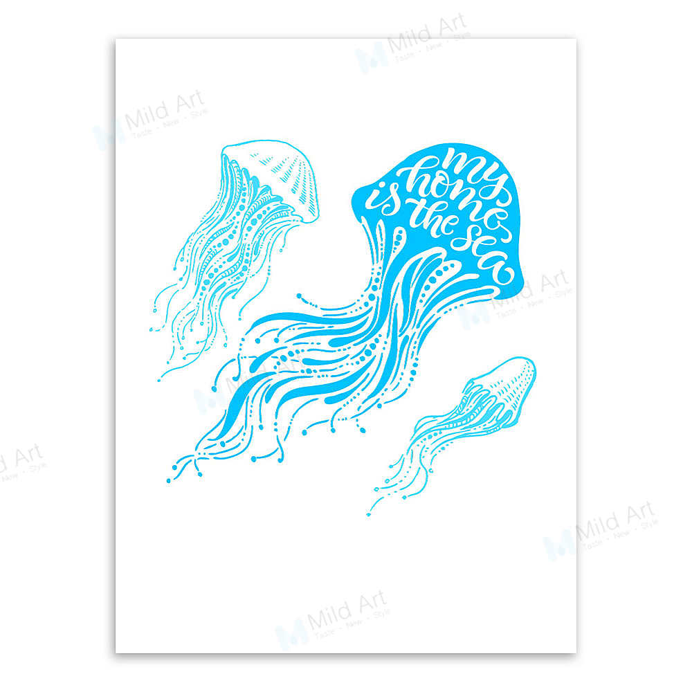 Sea Ocean Animal Typography Jellyfish Print Mild Art Taste Style